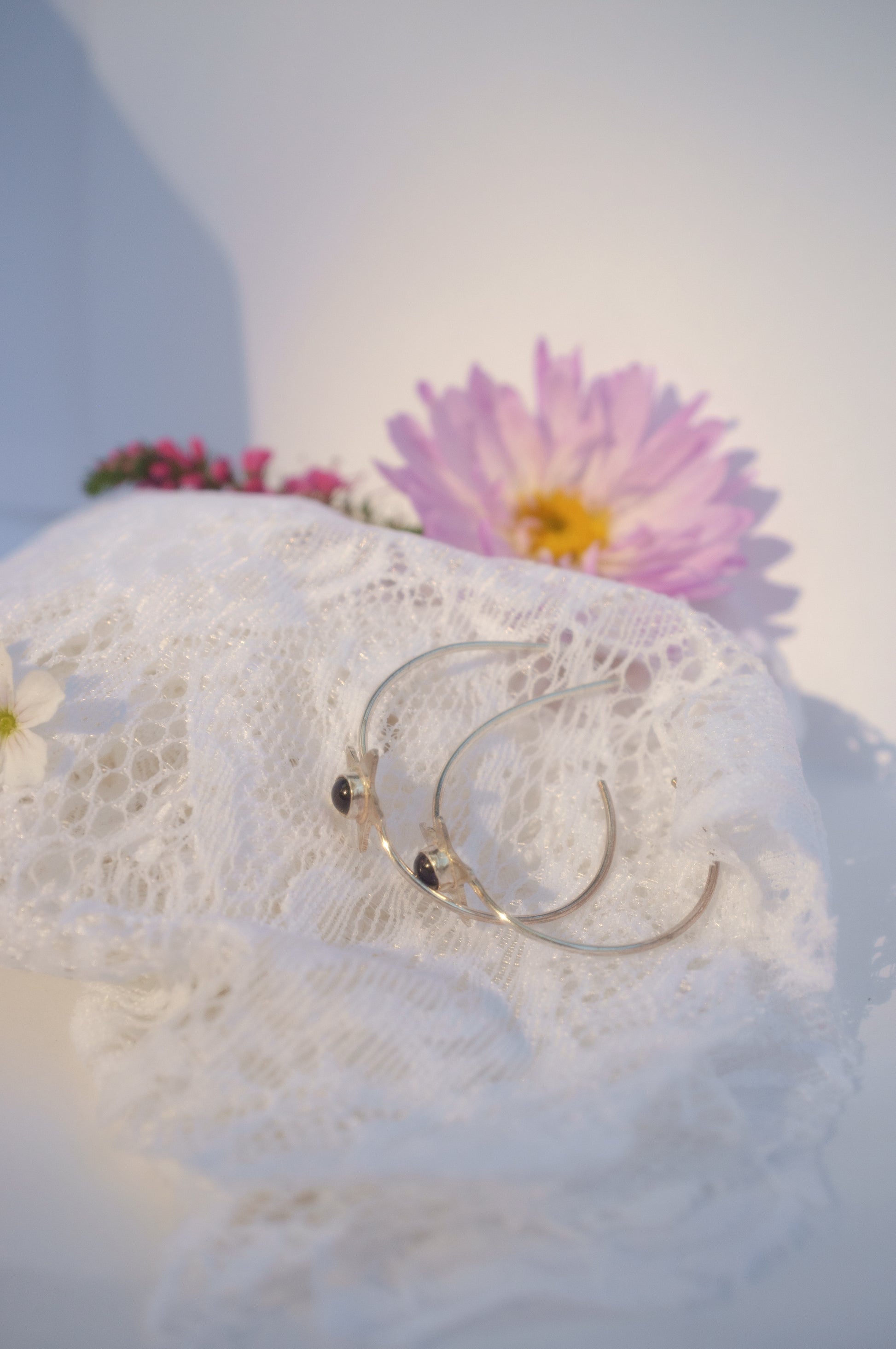 This piece features stunning ruby gemstones set on star hoop earrings. Made with 925 sterling silver. These are hard not to keep for myself! These come with earring backs to keep them secure.